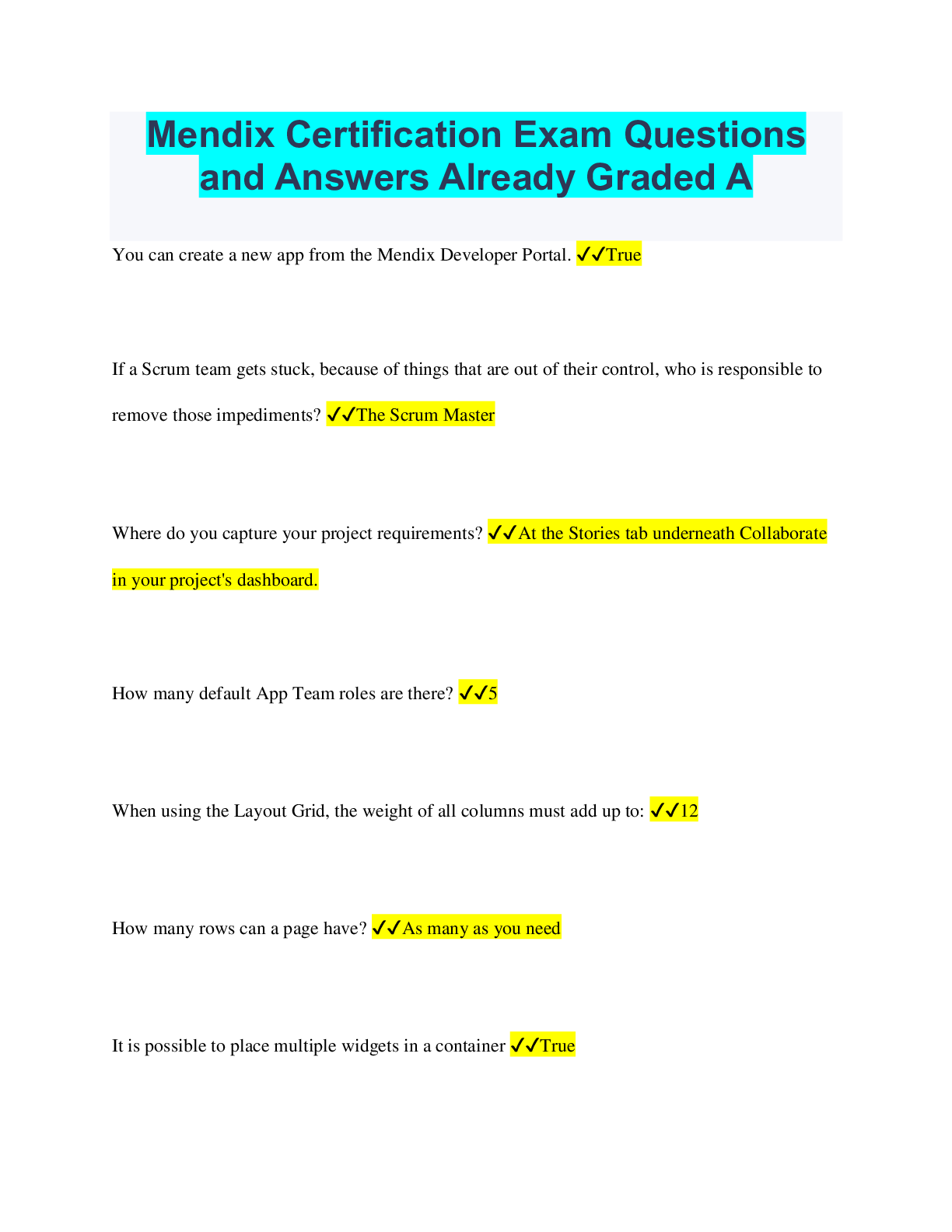 Computer Science > QUESTIONS & ANSWERS > Mendix Certification - Rapid Developer Questions and Answers Already Passed (All)