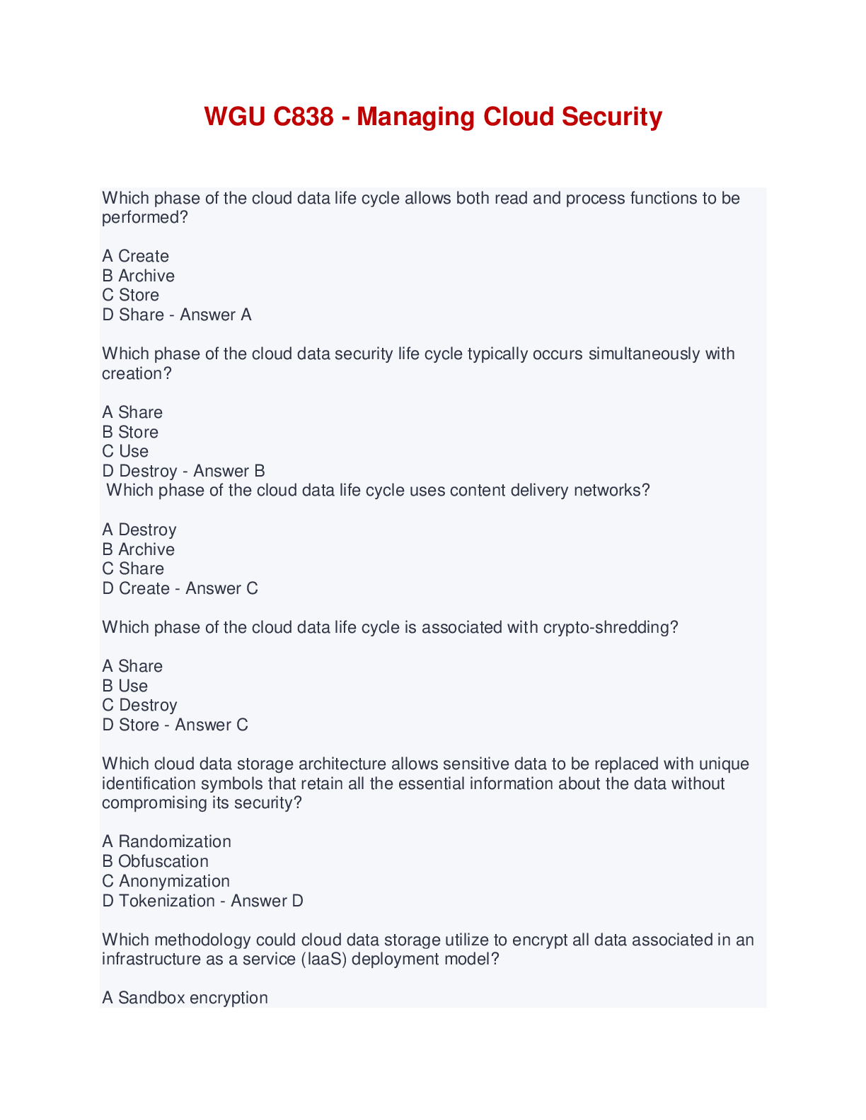 Computer Science > EXAM > WGU C838 - Managing Cloud Security Test Bank (All)