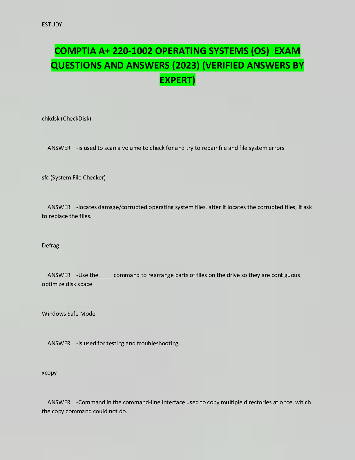 Computer Science > EXAM > COMPTIA A+ 220-1002 OPERATING SYSTEMS (OS) EXAM QUESTIONS AND ANSWERS (2023) (VERIFIED ANSWERS BY EXPERT) (All)