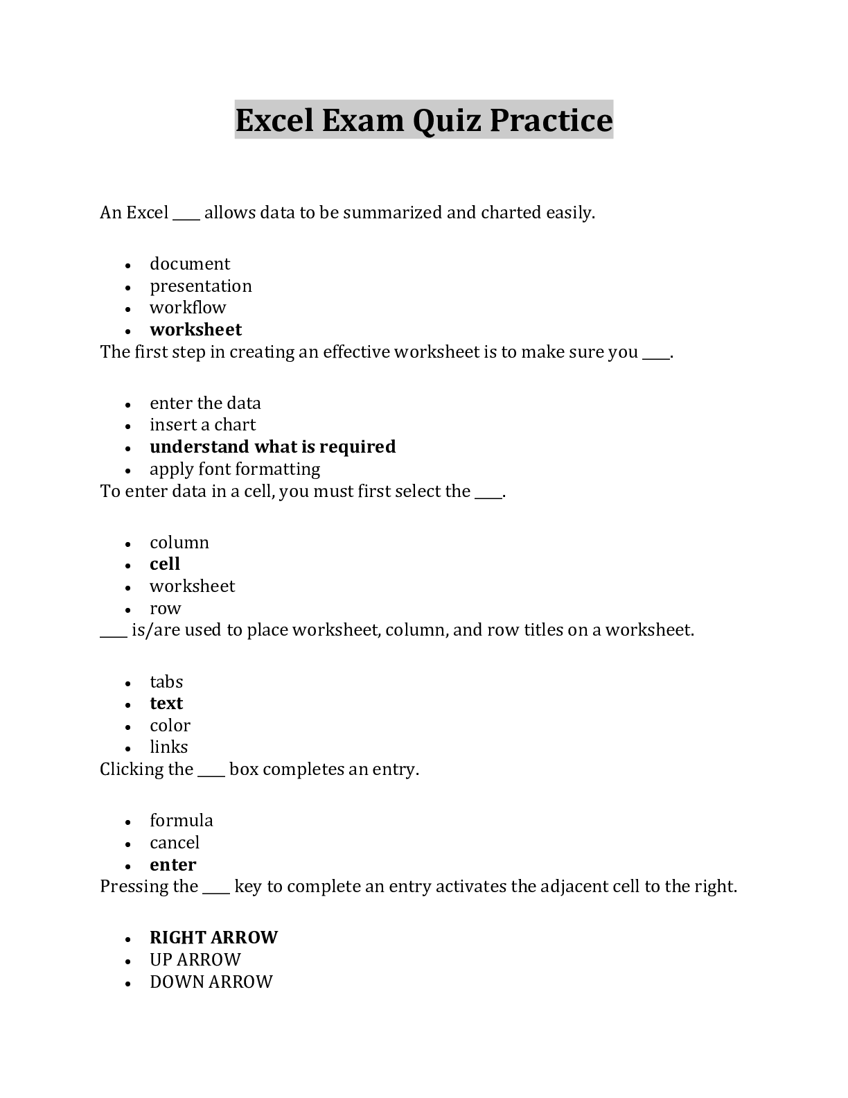 Computer ScienceEXAM > Excel Exam Quiz Practice 100% Correct (All)