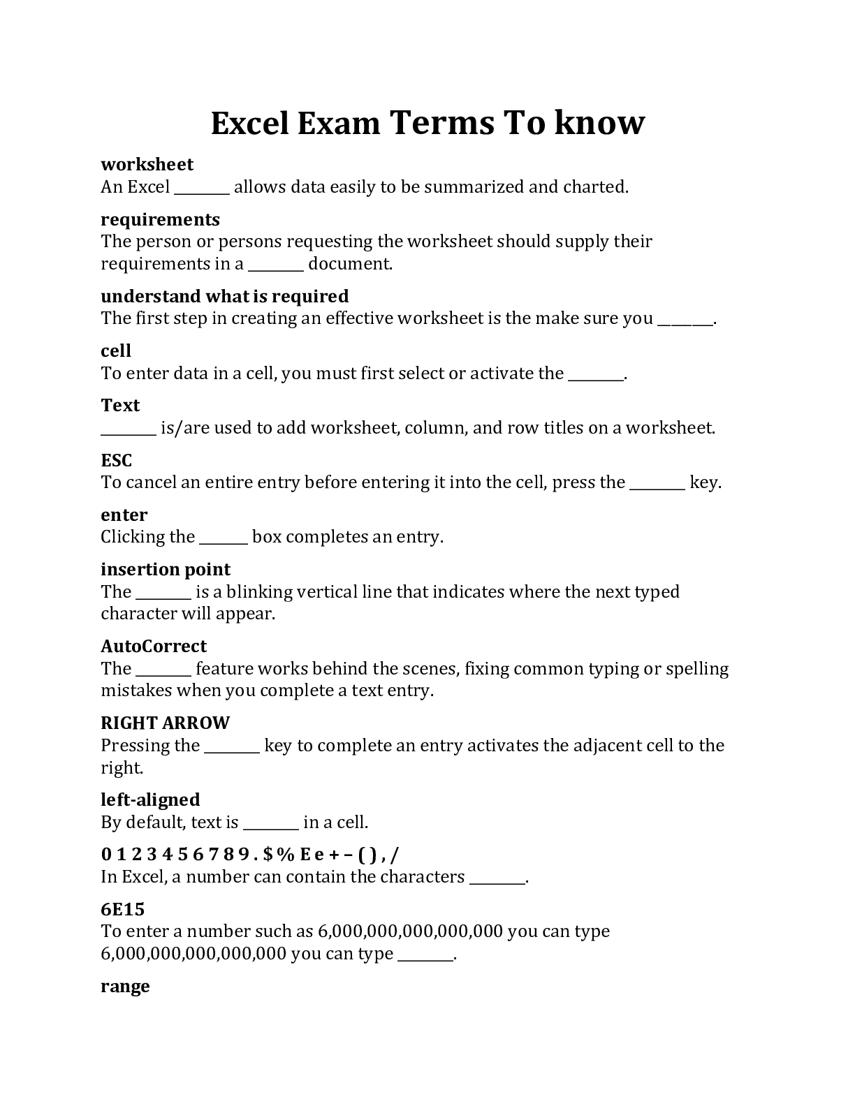 Computer ScienceEXAM > Excel Exam Terms To know (All)