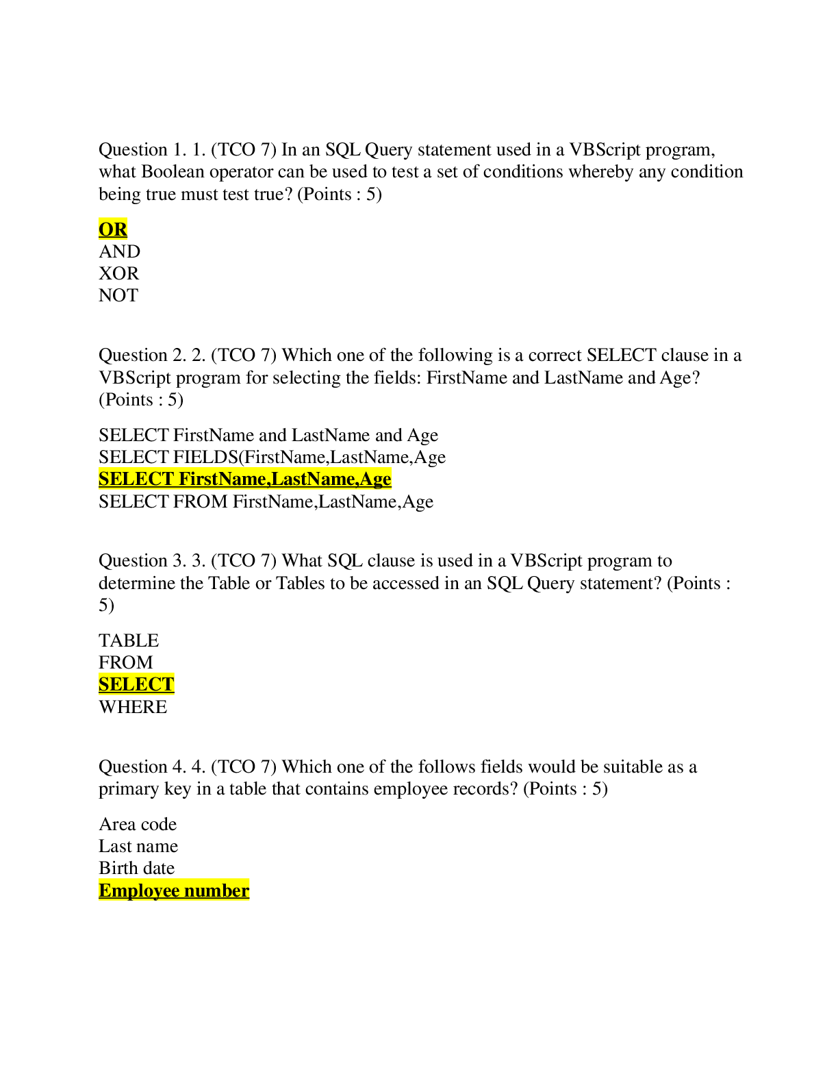 Computer Science > EXAM > COMP 230 Final Exam 2, Complete A+ Test, With Questions And Answers (All)
