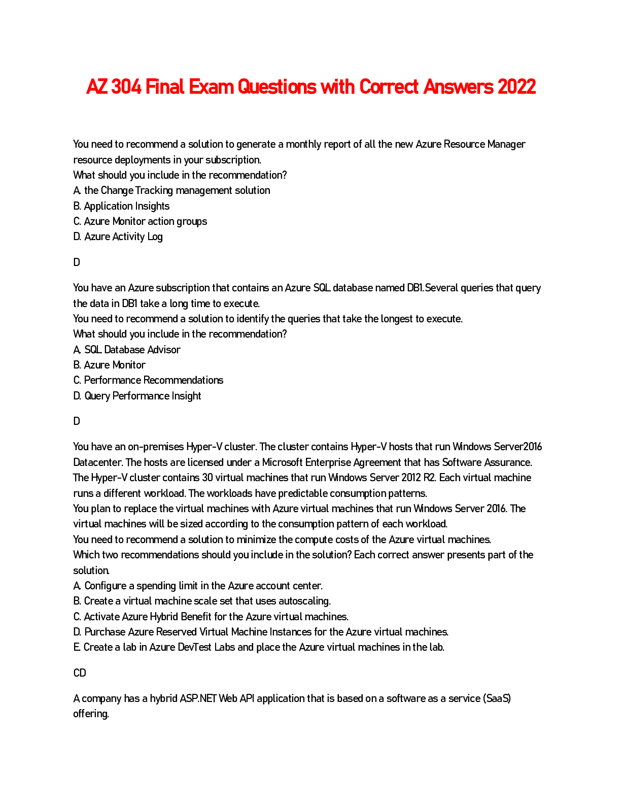 Computer Science > EXAMs > AZ 304 Final Exam Questions with Correct Answers 2022 (All)