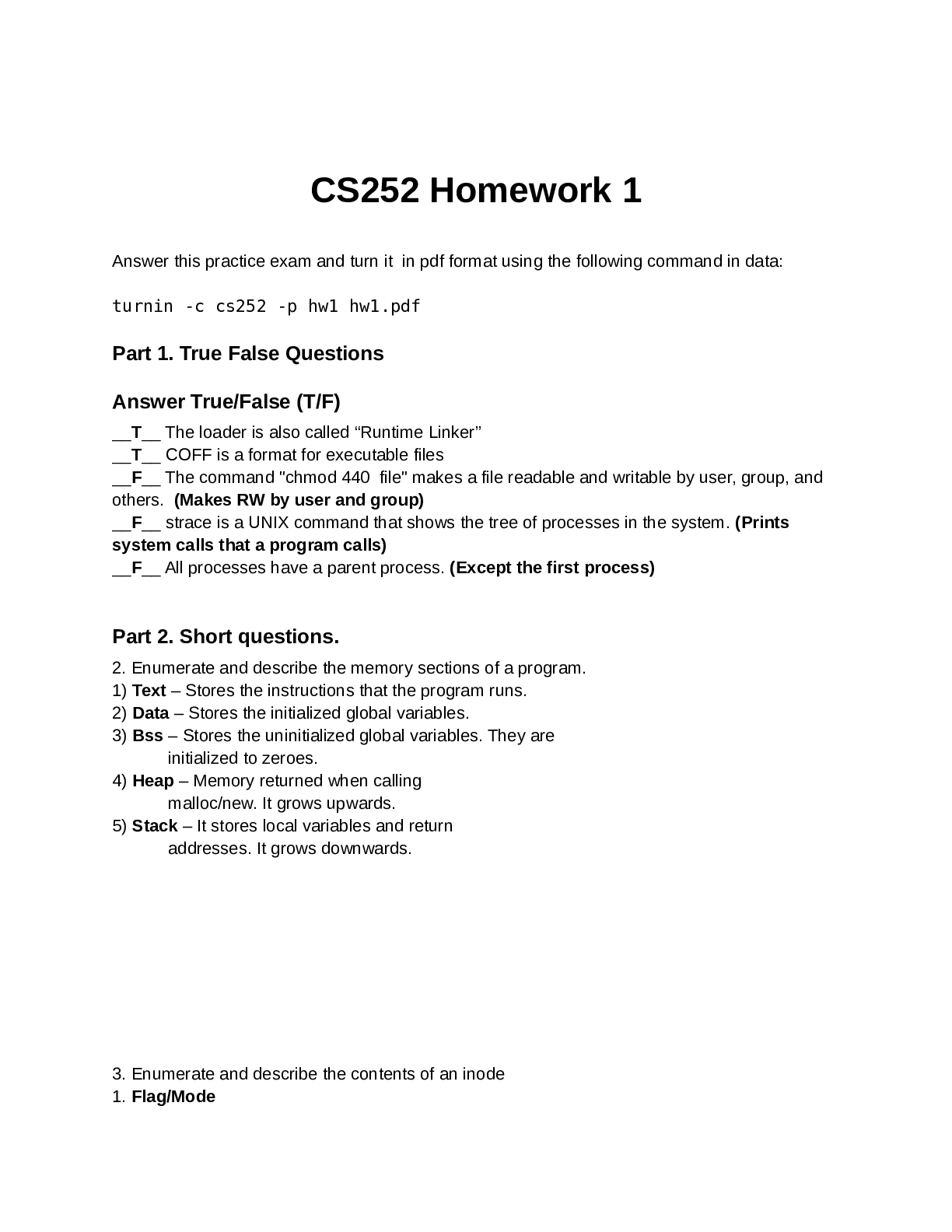 Computer Science > STUDY GUIDE > Purdue UniversityCS 252HW1-Spring2020 (All)