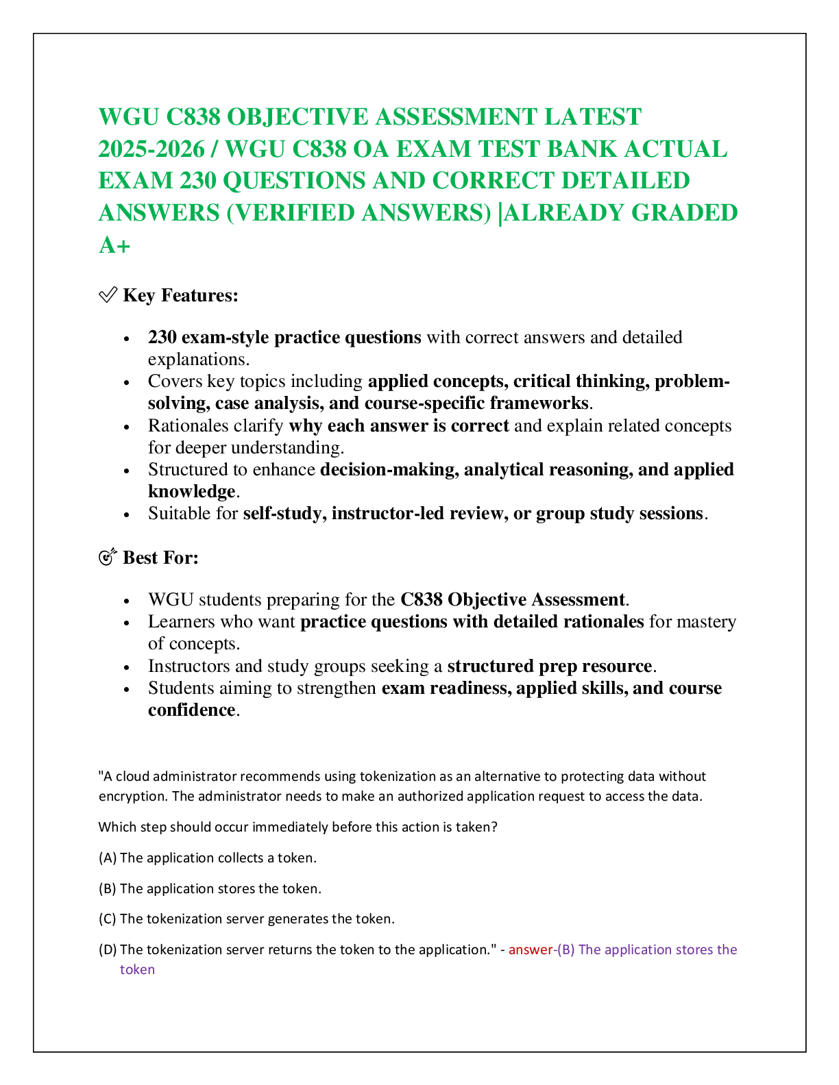 Computer Science > EXAM > WGU C838 OBJECTIVE ASSESSMENT LATEST 2025-2026 / WGU C838 OA EXAM TEST BANK ACTUAL EXAM 230 QUESTIONS AND CORRECT DETAILED ANSWERS (VERIFIED ANSWERS) |ALREADY GRADED A+ (All)