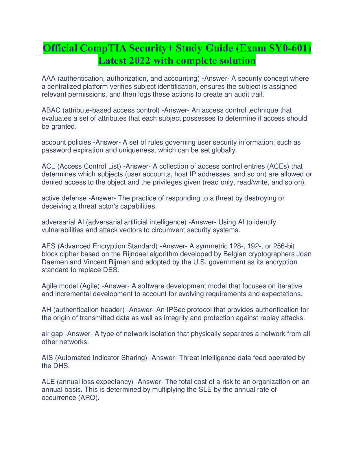 Computer Science > QUESTIONS & ANSWERS > 2022 COMPTIA SECURITY/SY0-601 BEST EXAM STUDY(100% Verified) (All)