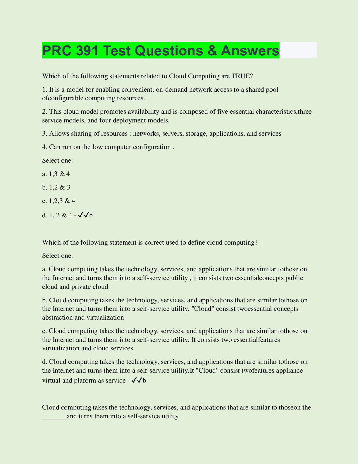 Computer Science > EXAMs > PRC 391 Test Questions & Answers | 45 Questions with 100% Correct Answers | Updated & Verified (All)