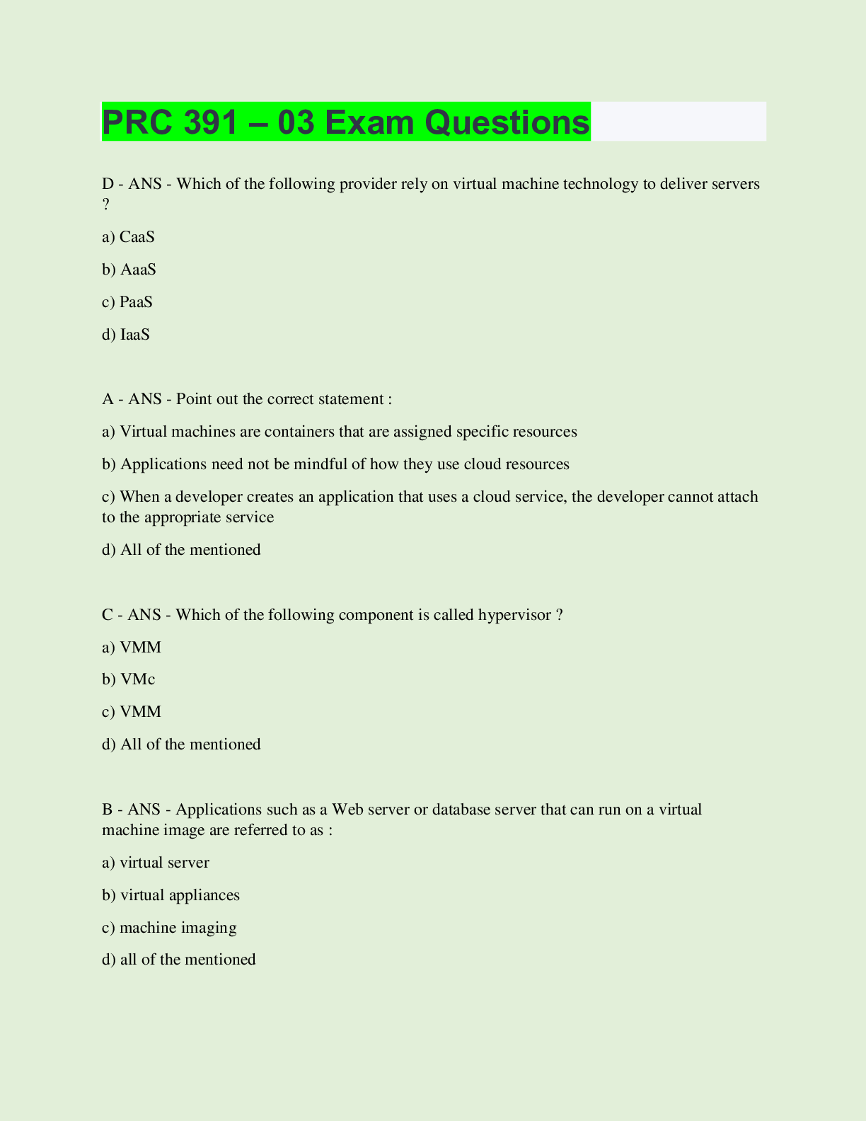 Computer Science > EXAM > PRC 391 – 03 Exam Questions | 60 Questions with 100% Correct Answers | Updated & Verified (All)