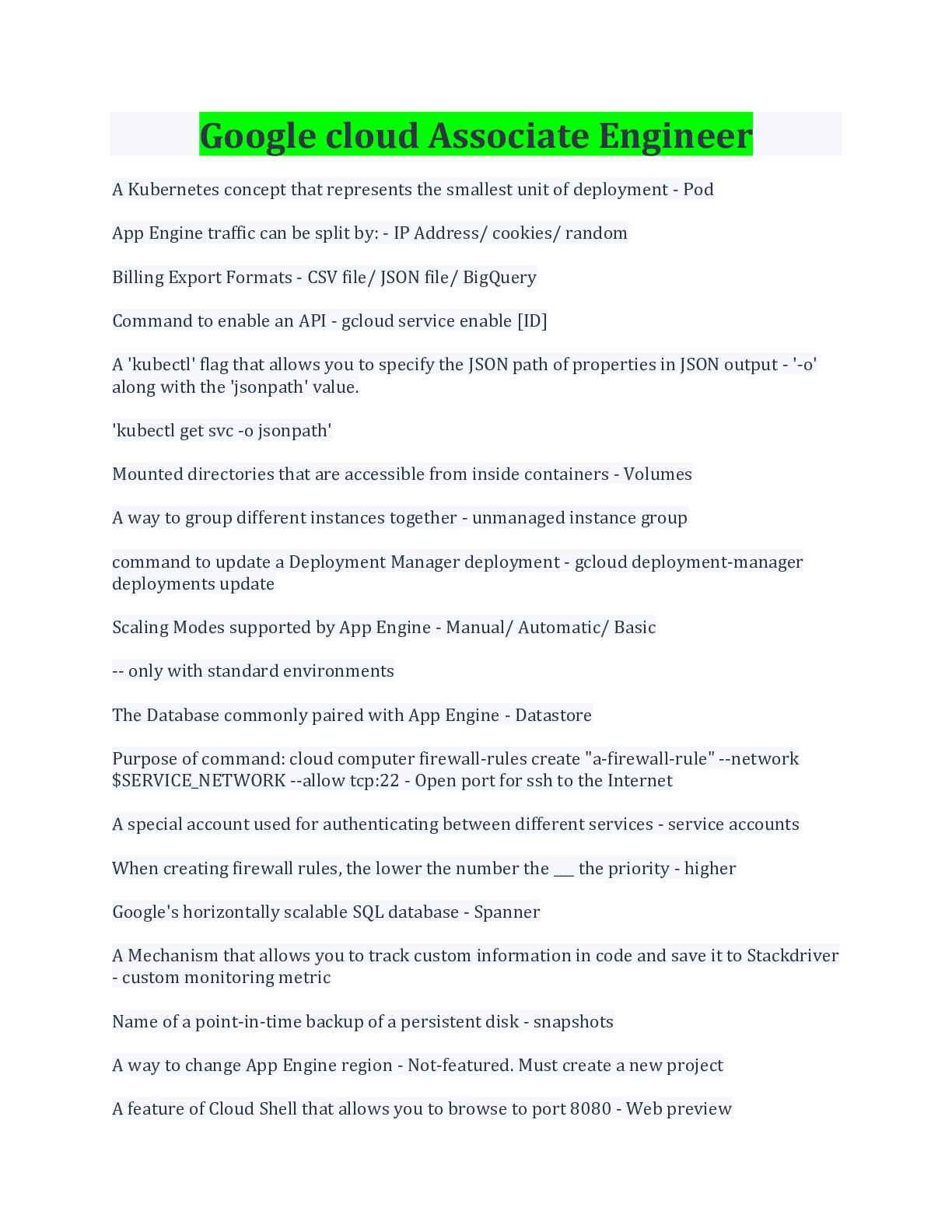 Computer Science > EXAM > Google cloud Associate Engineer Latest Update (All)