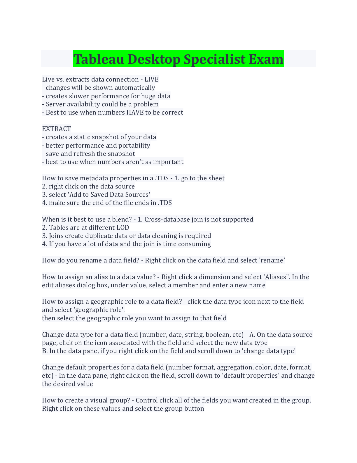 Computer Science > EXAM > Tableau Desktop Specialist Exam With Complete Solution Rated A (All)