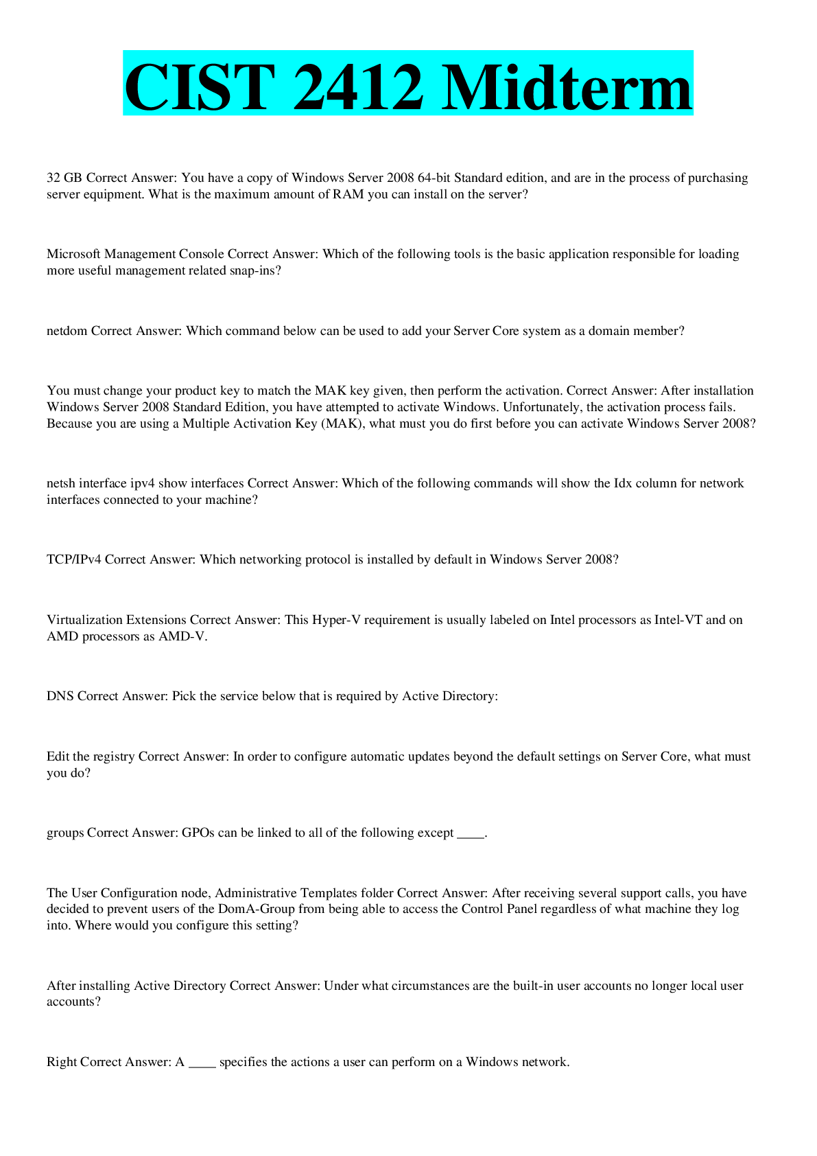 Computer Science > EXAM > CIST 2412 Midterm QUESTIONS AND ANSWERS| GRADED A+ (All)
