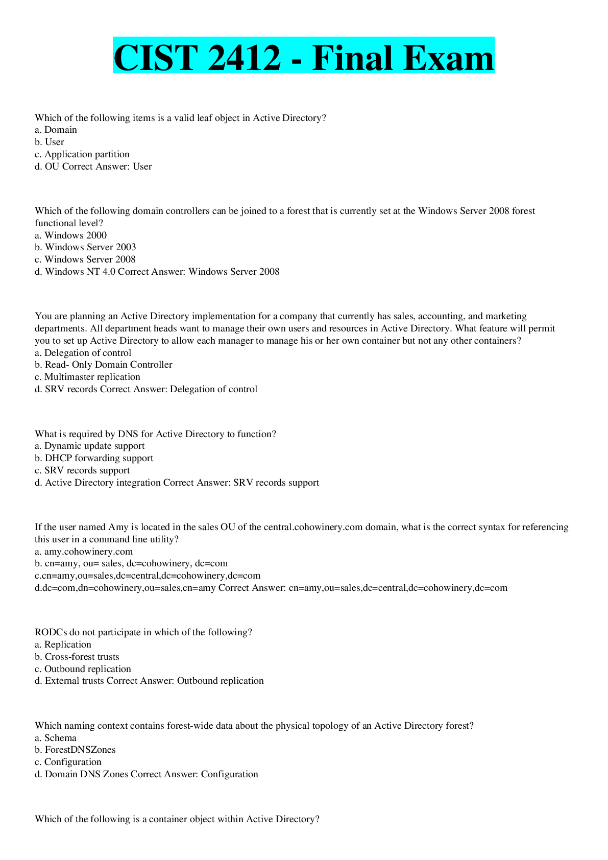 Computer Science > EXAM > CIST 2412 - Final Exam QUESTIONS AND ANSWERS(SCORES A+) (All)