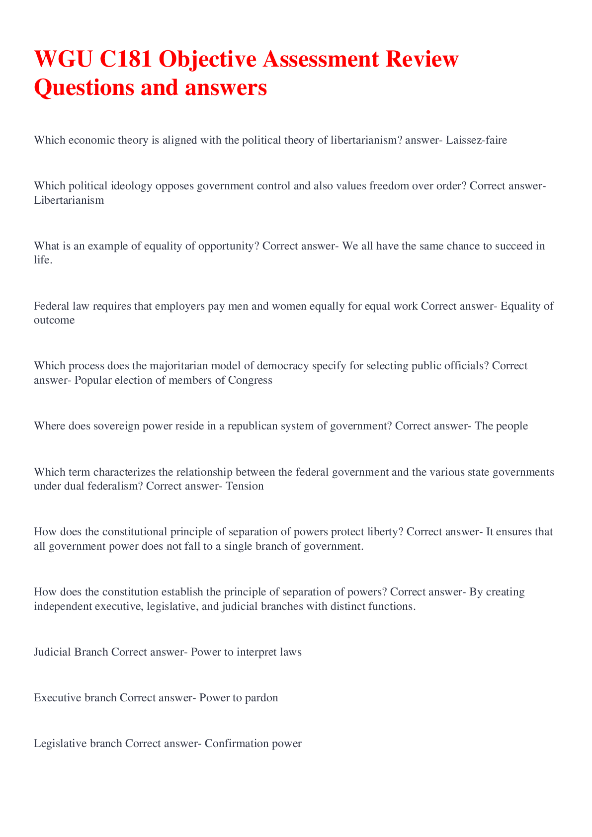 Computer Science > QUESTIONS & ANSWERS > WGU C181 Objective Assessment Review Questions and answers (All)