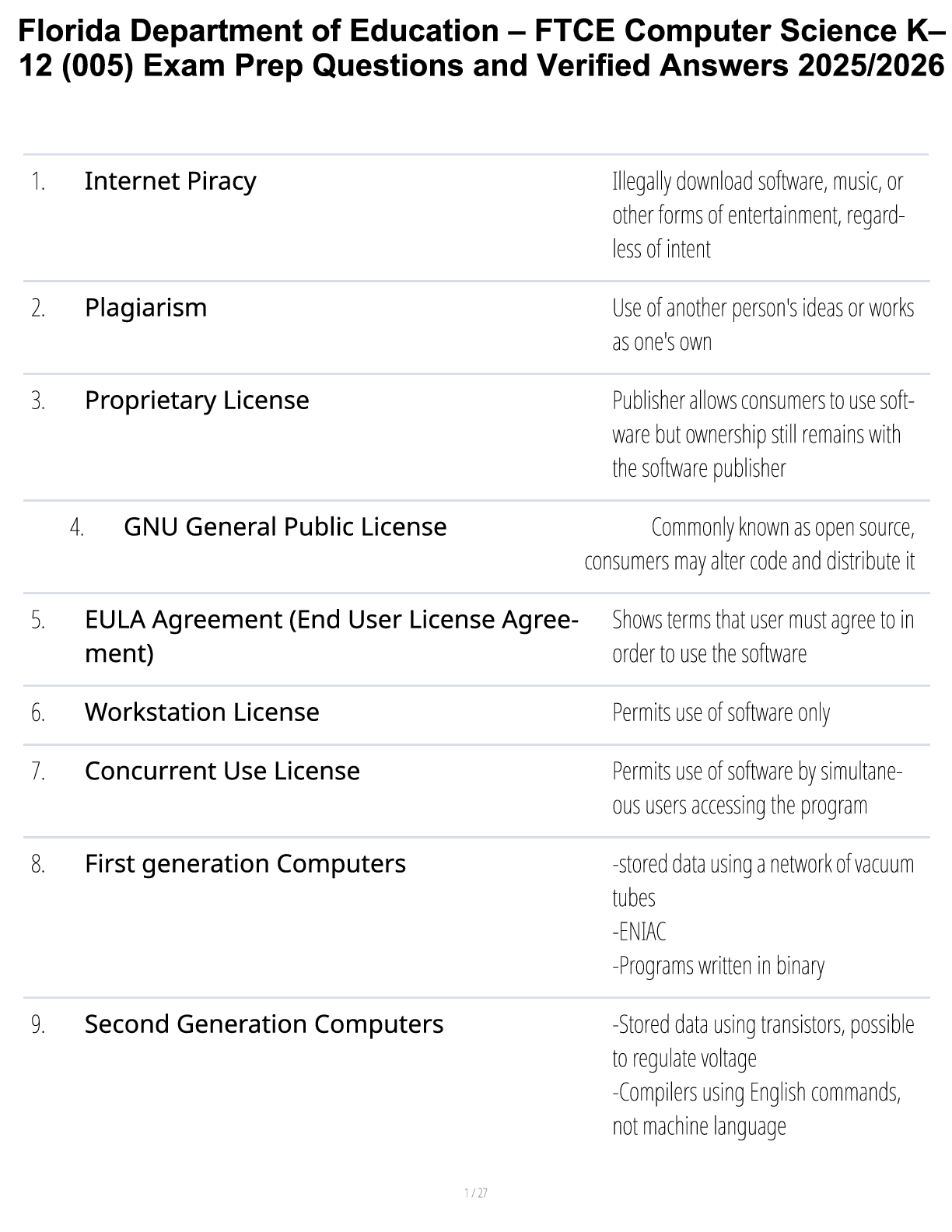 Computer Architecture > STUDY GUIDE > Florida Department of Education – FTCE Computer Science K–12 (005) Exam Prep Questions and Verified Answers 2025/2026 (All)