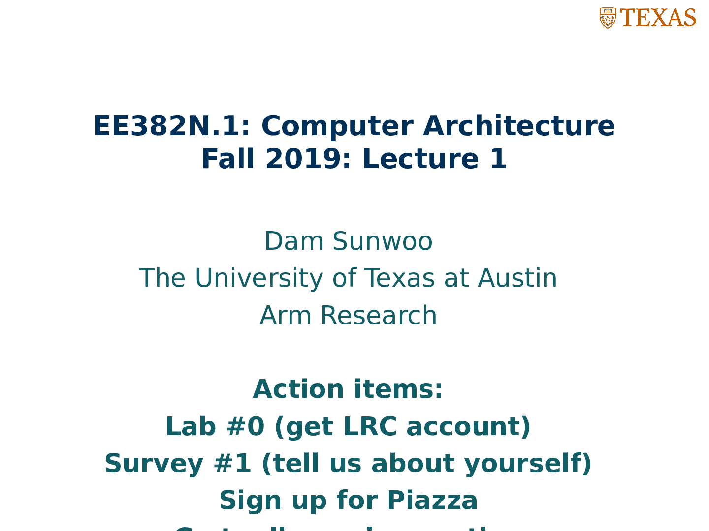 Computer Architecture > Study Notes > EE382N.1: Computer Architecture Fall 2019: Lecture 1 (All)