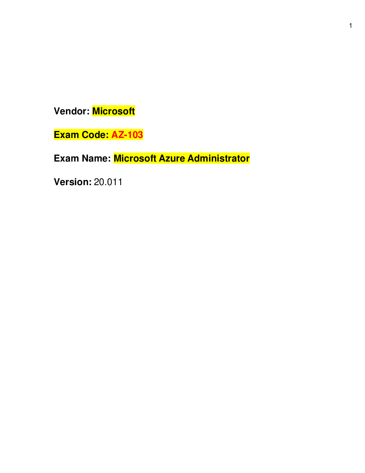 Computer Architecture > EXAM > Exam Code: AZ-103 Microsoft Azure Administrator Version: 20.011 (All)