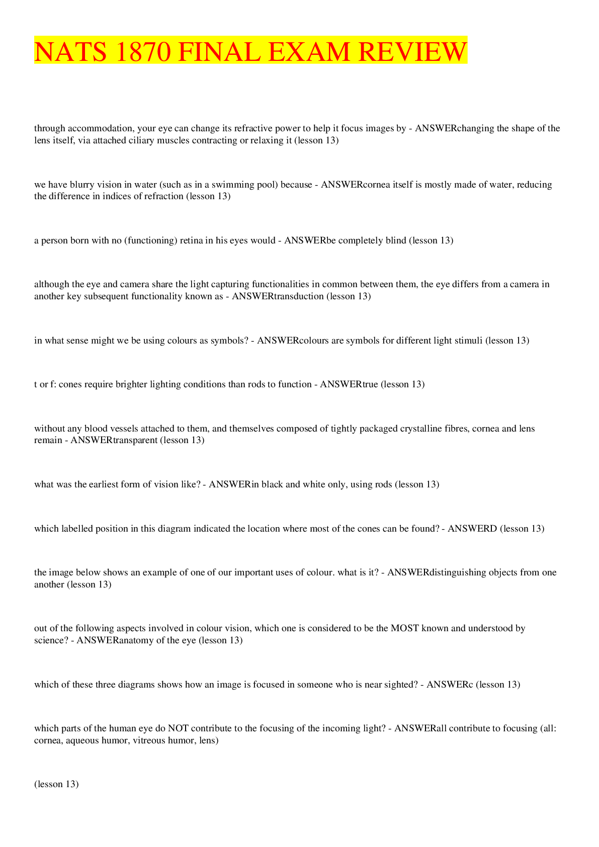 SCIENCE 101 > QUESTIONS & ANSWERS > NATS 1870 FINAL EXAM REVIEW 2022 (All)