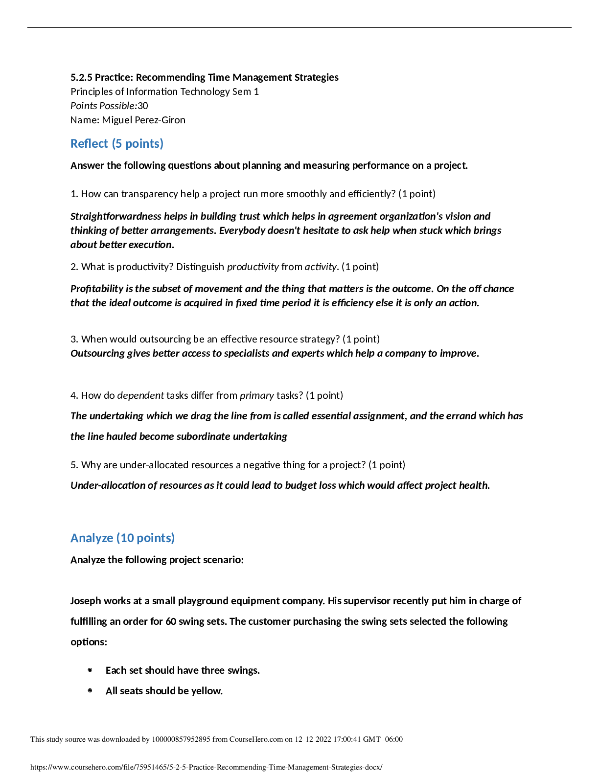 SCIENCE 101 > STUDY GUIDE > 5 2 5 Practice Recommending Time Management Strategies - Etowah High School SCIENCE Bio (All)