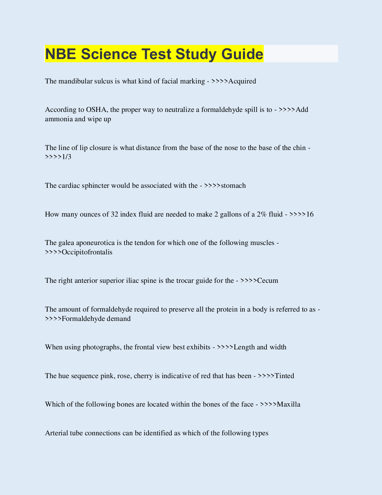 SCIENCE 101 > STUDY GUIDE > NBE Science Test Study Guide | 190 Questions with 100% Correct Answers | Updated & Verified (All)