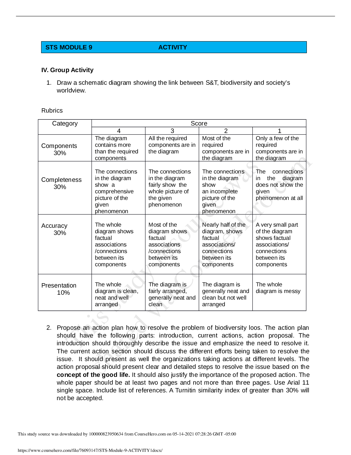 SCIENCE 101 > STUDY GUIDE > Adamson UniversityScience PC110STS Module 9 (ACTIVITY)(1) (All)