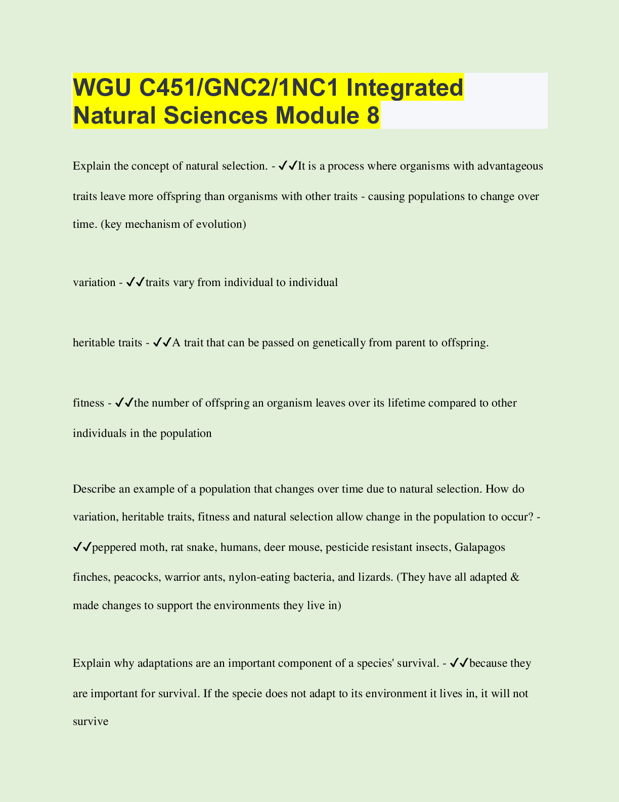SCIENCE 101 > STUDY GUIDE > WGU C451/GNC2/1NC1 Integrated Natural Sciences Module 8 | Questions with 100% Correct Answers | Verified | Latest Update (All)