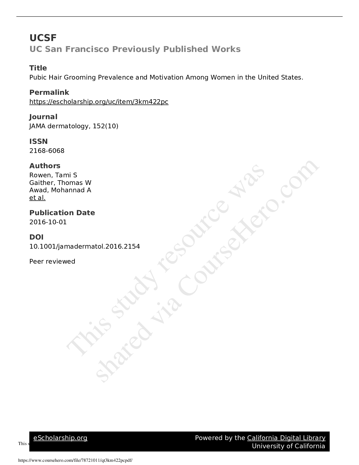 SCIENCE 101 > PATIENT ASSESSMENTS > SEX 123 Pubic Hair Grooming Prevalence and Motivation Among Women in the United States (All)