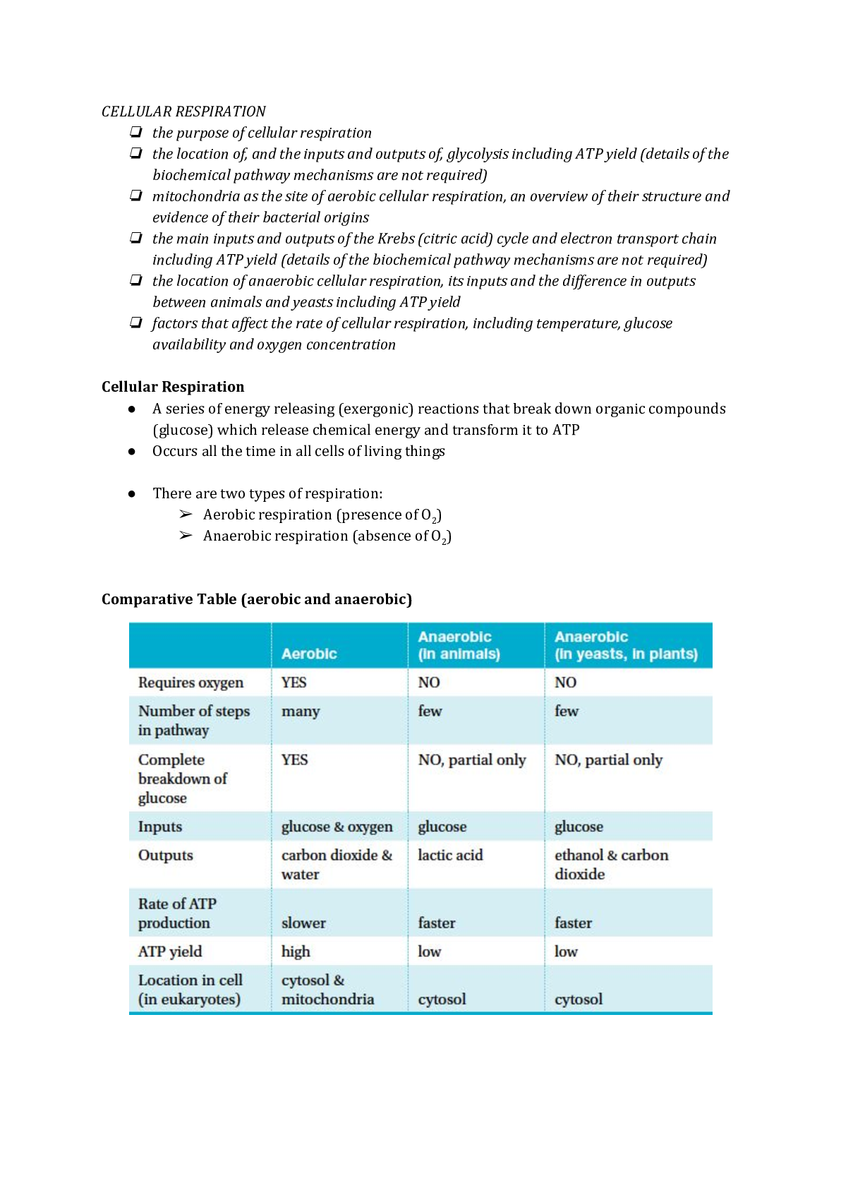 SCIENCE 101 > Class Notes > SCIENCE 12Biology Unit 3 - Cellular Respiration-Killester College - (All)