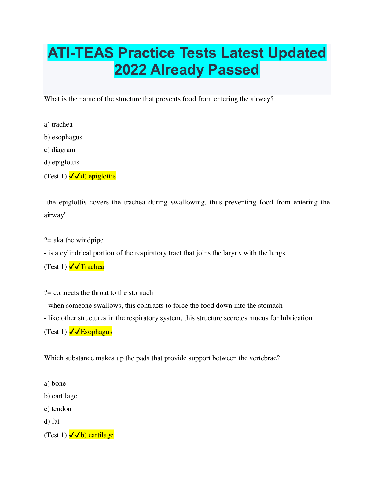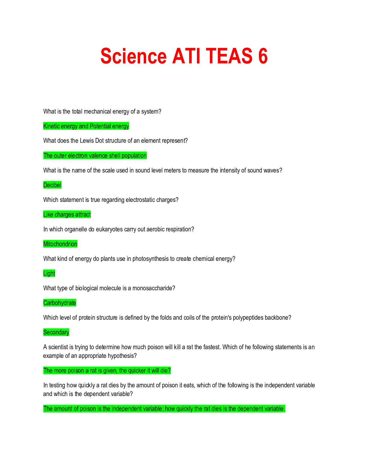 SCIENCE 101 > EXAMs > ATI-TEAS Practice Tests questions and answers | 31 pages of comprehensive work. Graded A+ (All)