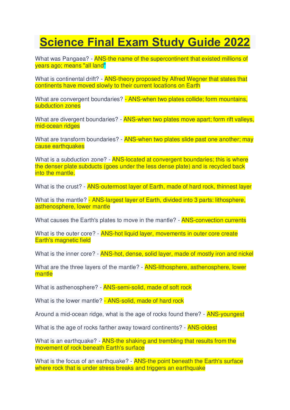 SCIENCE 101 > QUESTIONS & ANSWERS > Science Final Exam Study Guide 2022 (All)