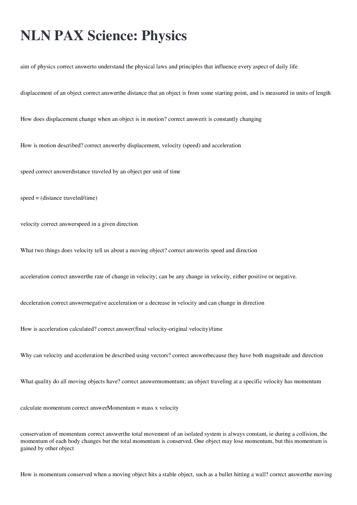 SCIENCE 101 > EXAM > NLN PAX SCIENCE QUESTIONS AND ANSWERS LATEST 2022 RATED A (All)