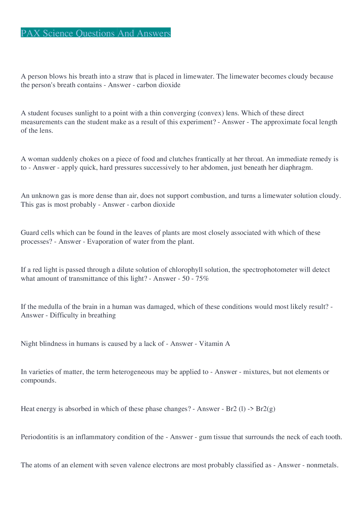 SCIENCE 101 > EXAM > PAX Science Questions And Answers 2022/2023 (All)