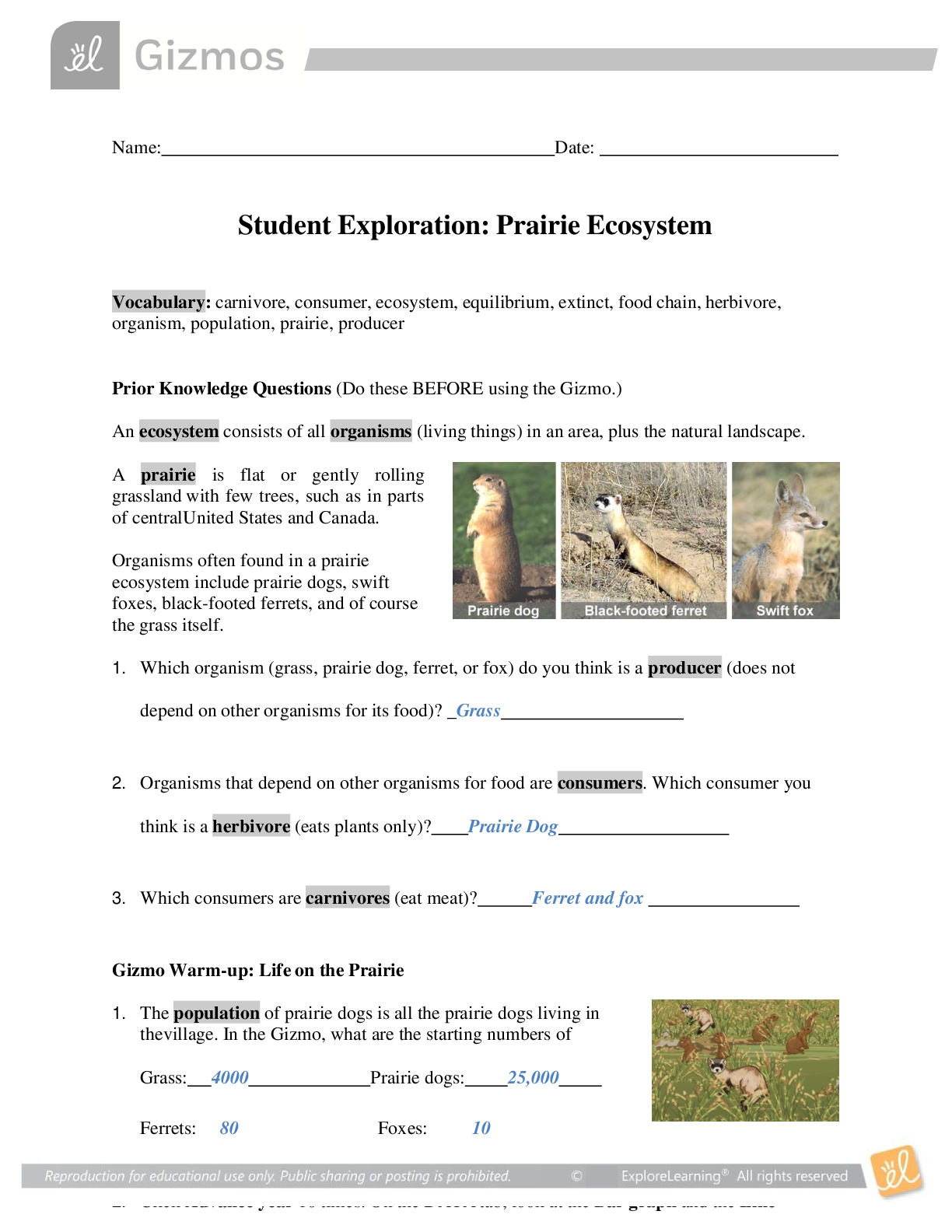 SCIENCE 101 > EXAMs > Gizmos Student Exploration: Prairie Ecosystem Answer Key (All)