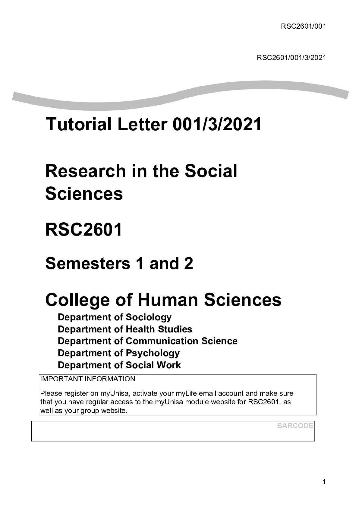 SCIENCE 101 > QUESTIONS & ANSWERS > Tutorial Letter 001/3/2021 Research in the Social Sciences RSC2601 Semesters 1 and 2 (All)