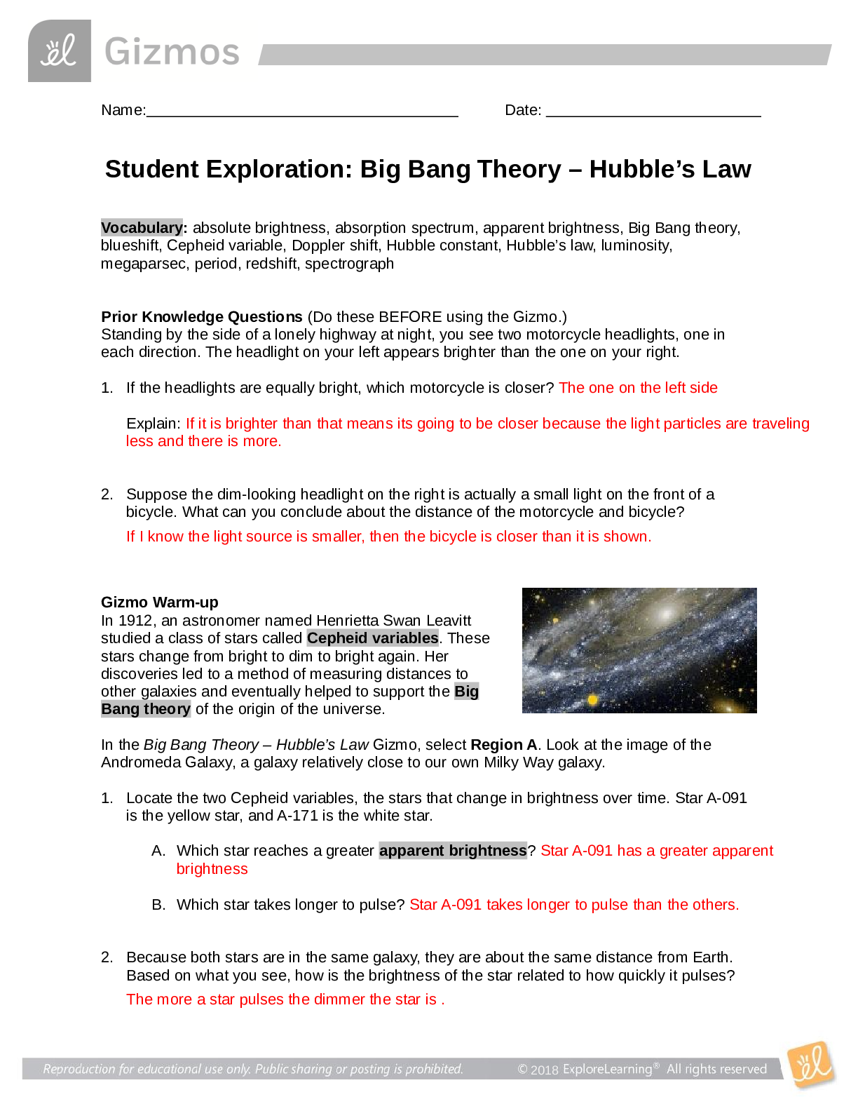 SCIENCE 101 > EXAMs > GIZMOS Student Exploration: Big Bang Theory – Hubble’s Law 2021 (answered 100% (All)