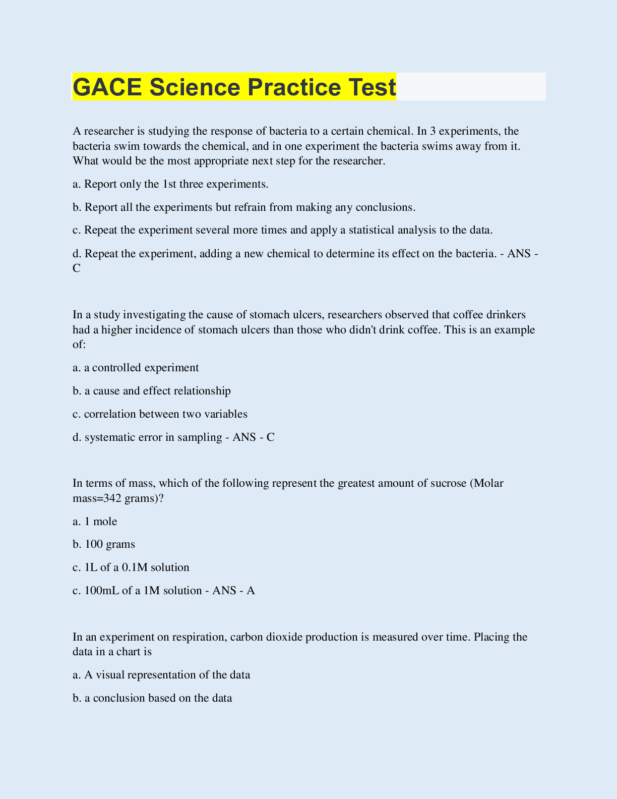SCIENCE 101 > EXAM > GACE Science Practice Test | 90 Questions with 100% Correct Answers | Updated & Verified (All)