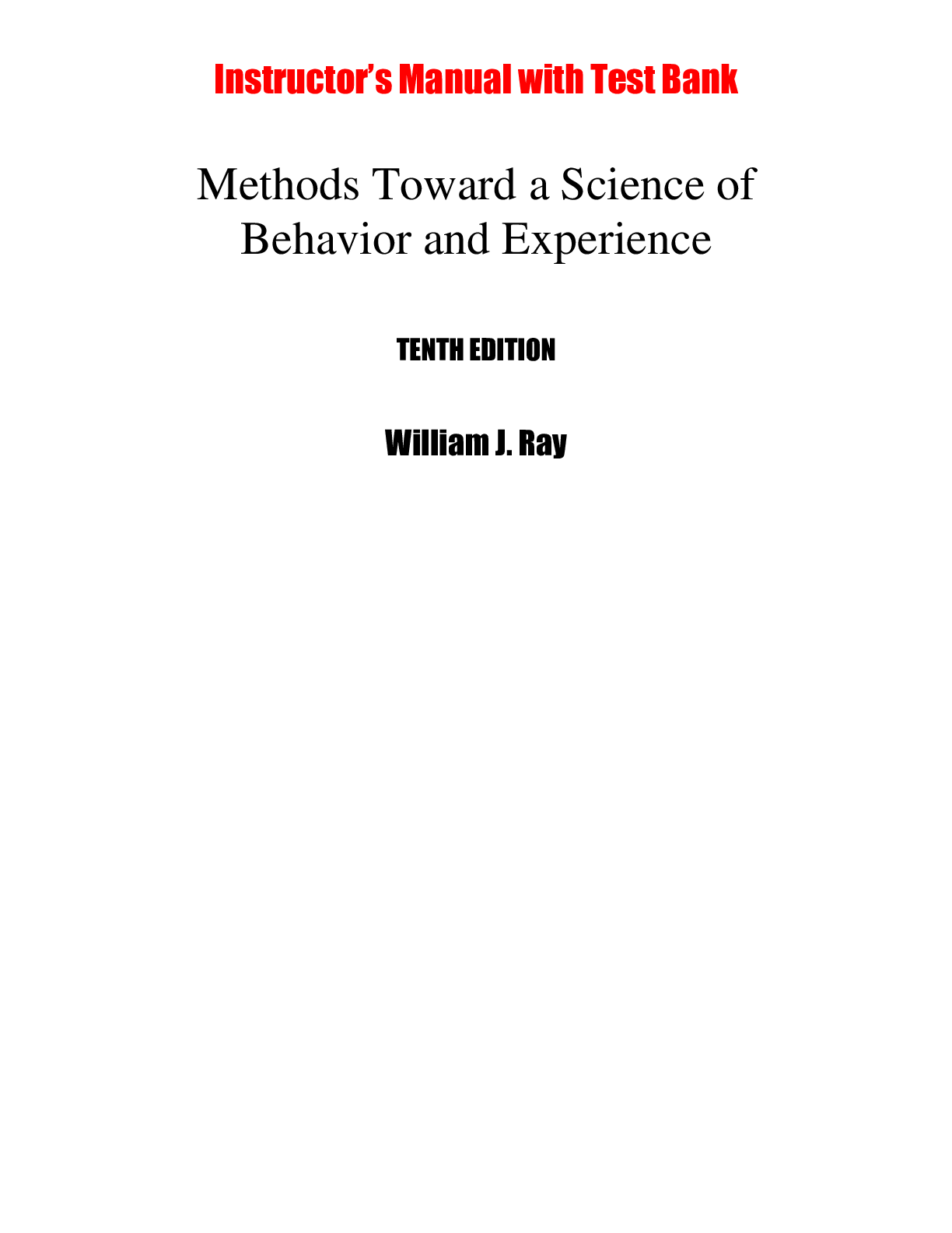 SCIENCE 101 > TEST BANKS > Instructor’s Manual with Test Bank Methods Toward a Science of Behavior and Experience TENTH EDITION William J. Ray (All)