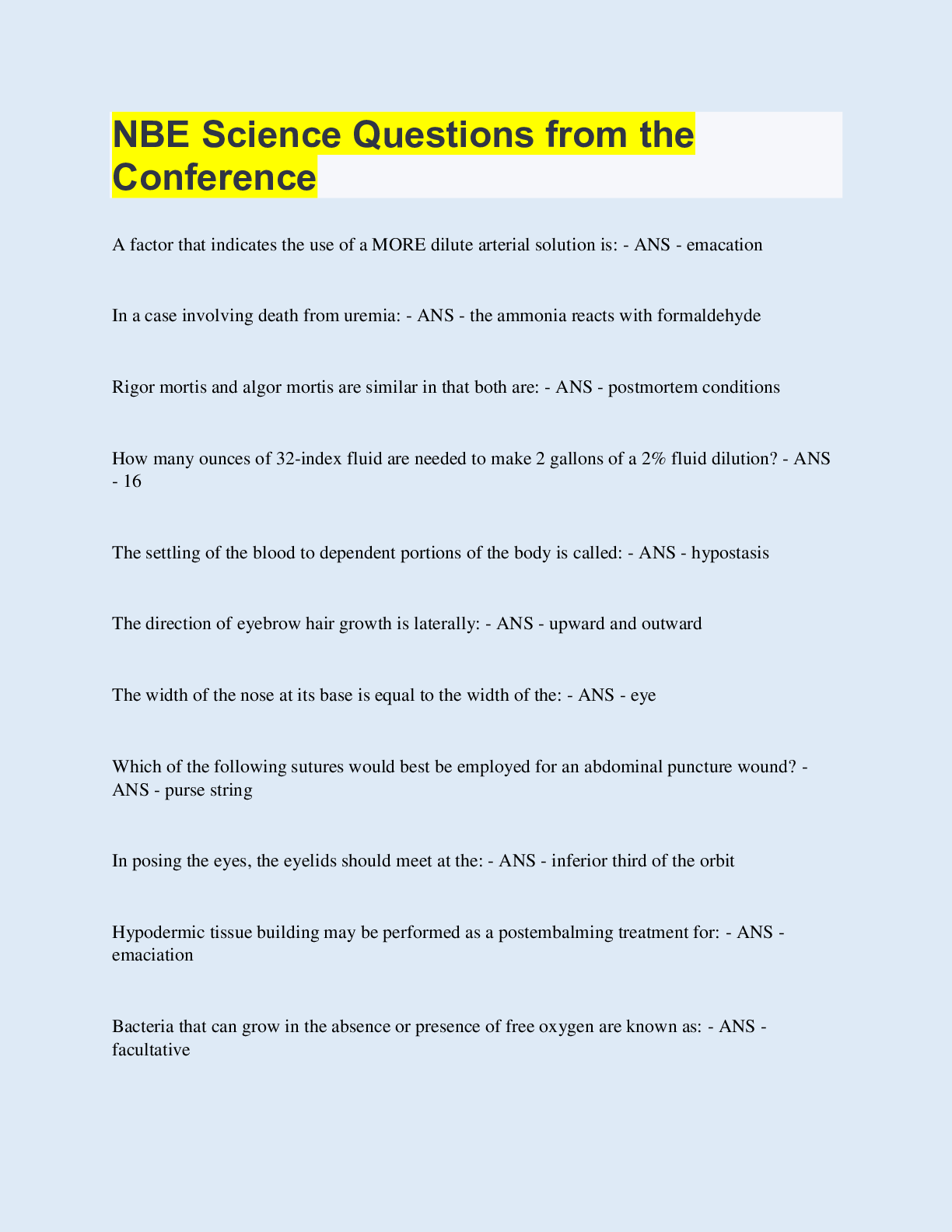 SCIENCE 101 > EXAM > NBE Science Questions from the Conference | 30 Questions with 100% Correct Answers | Updated & Verified (All)