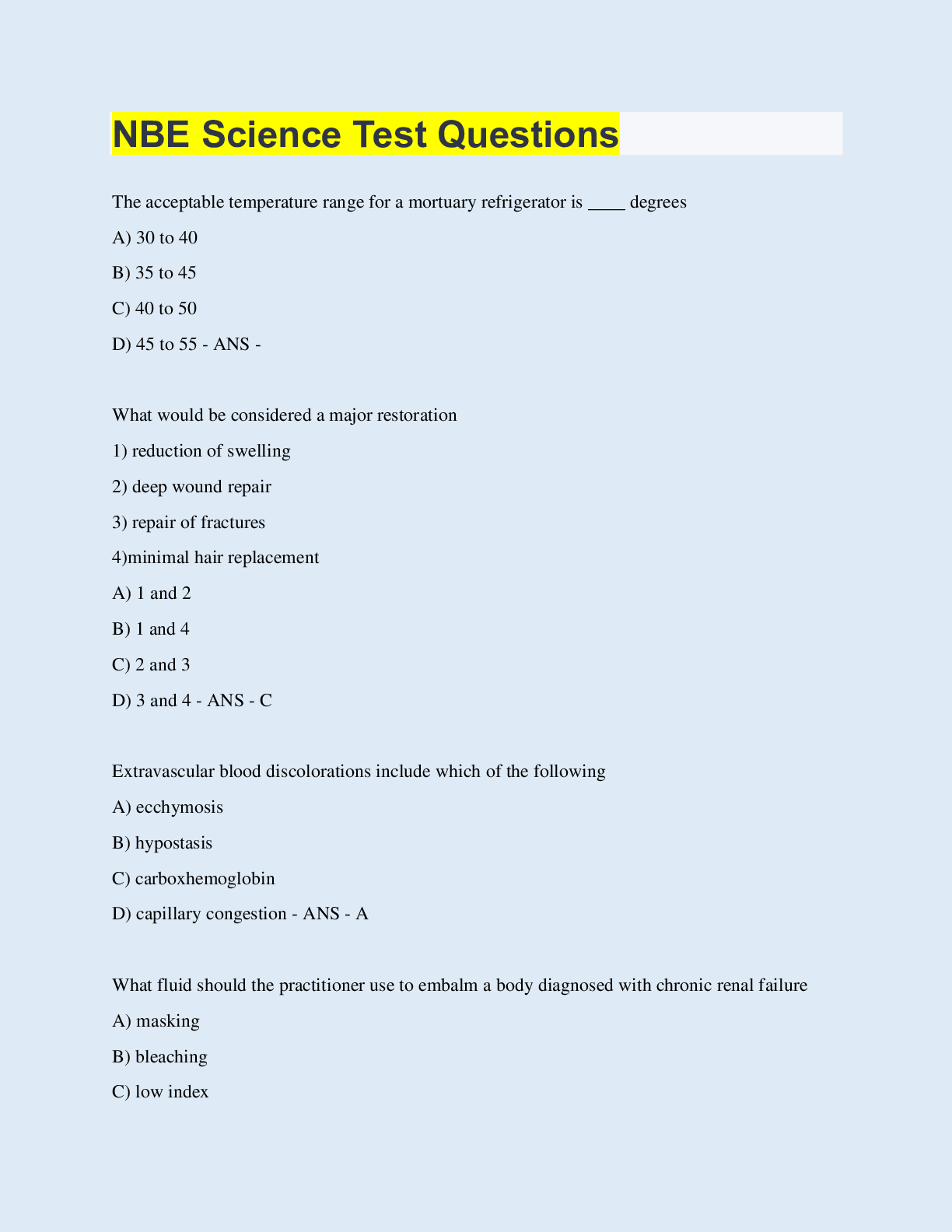 SCIENCE 101 > EXAM > NBE Science Test Questions | 70 Questions with 100% Correct Answers | Updated & Verified (All)
