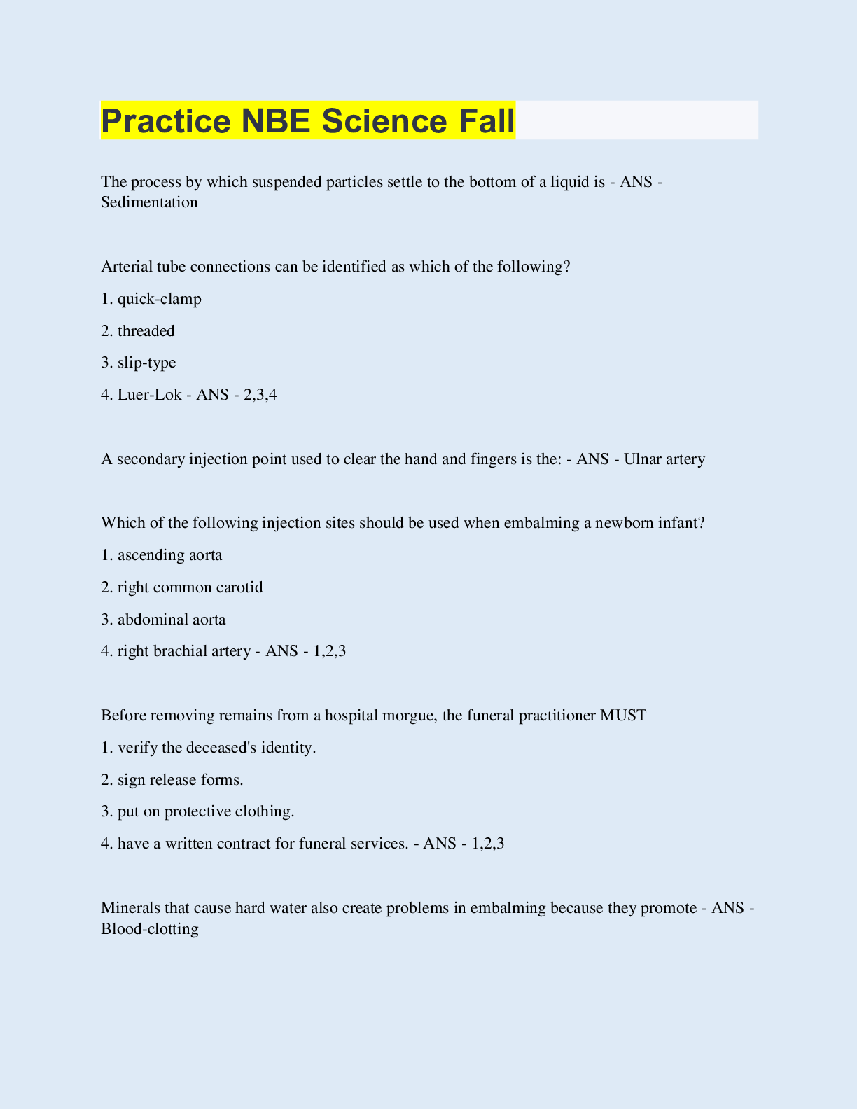 SCIENCE 101 > EXAM > Practice NBE Science Fall | 100 Questions with 100% Correct Answers | Updated & Verified (All)