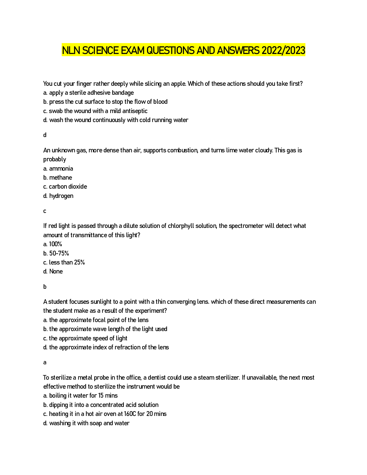 SCIENCE 101 > EXAM > NLN SCIENCE EXAM QUESTIONS AND ANSWERS 2022/2023 (All)