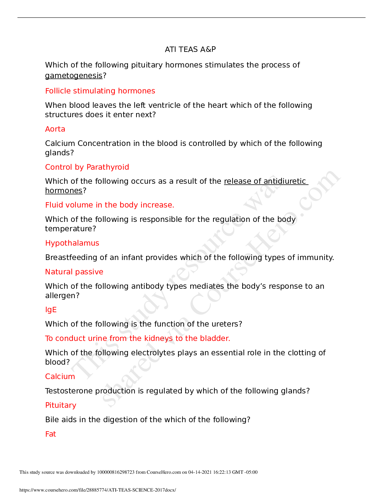 SCIENCE 101 > EXAM > ATI TEAS A&P/ ATI TEAS SCIENCE 2017 (All)