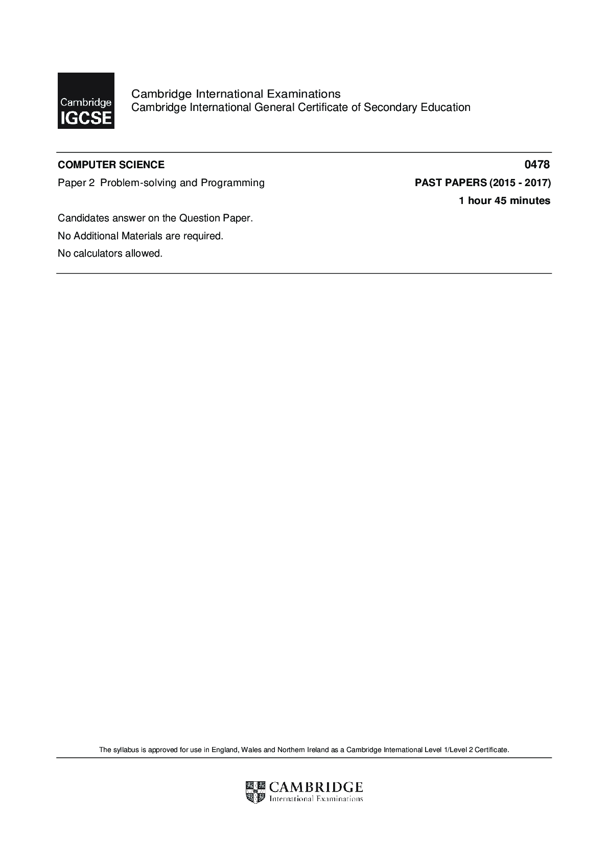 SCIENCE 101 > EXAM > Cambridge International Examinations Cambridge International General Certificate of Secondary Education PAST PAPERS (2015 - 2017) < NO ANSWERS> (All)