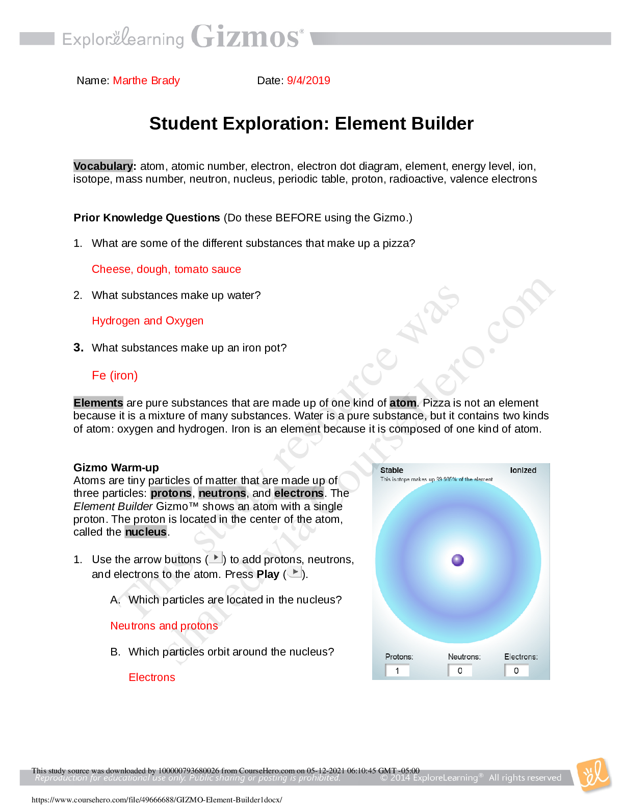 SCIENCE 101 > GIZMOS > GIZMO - Element Builder-VERIFIED BY EXPERTS-GRADED A+(LATEST EDITION) (All)