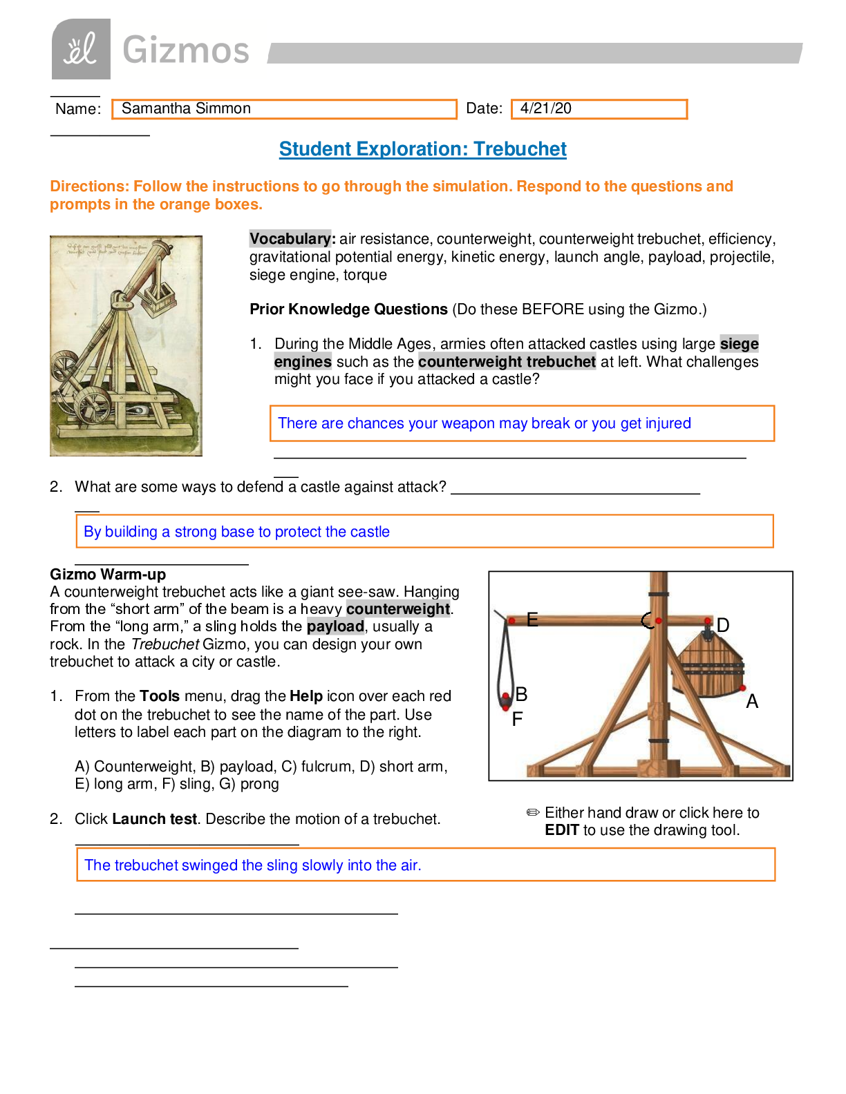 SCIENCE 101 > QUESTIONS & ANSWERS > Gizmo Trebuchet | Student Exploration: Trebuchet 2021 (All)