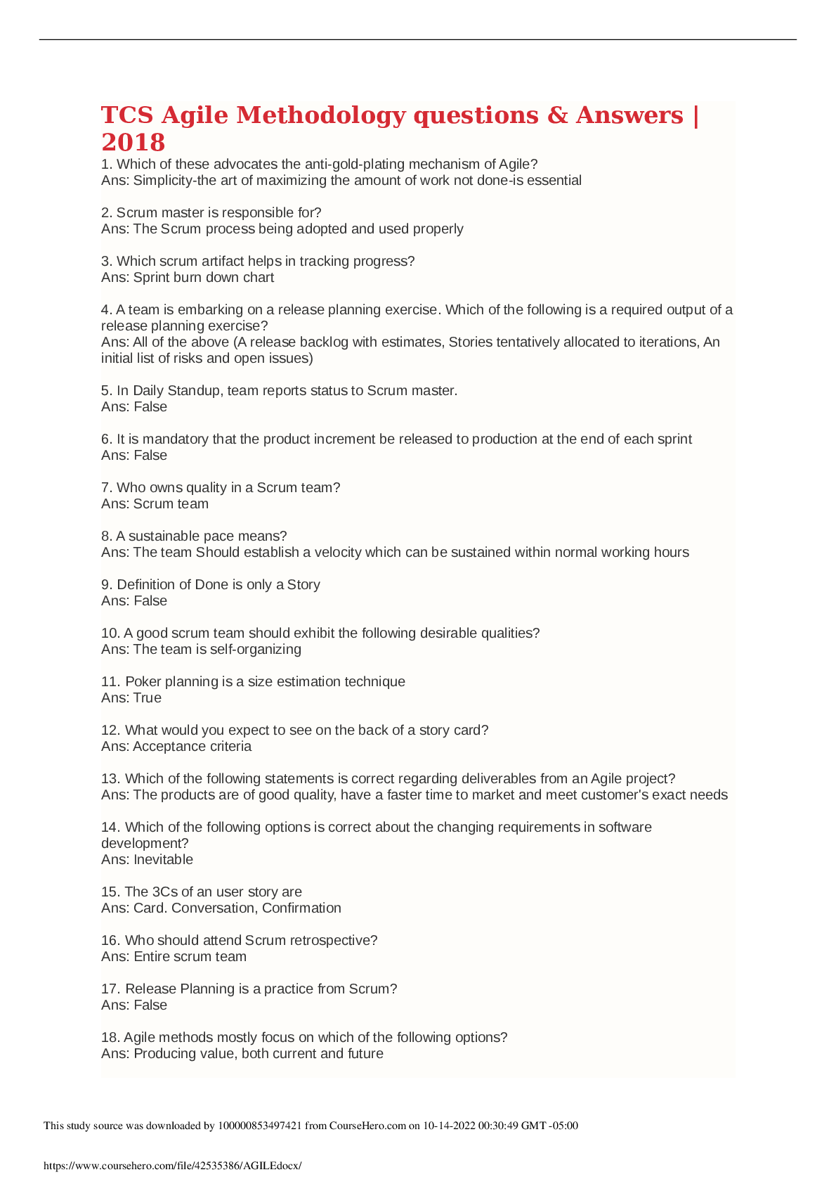 SCIENCE 101 > QUESTIONS & ANSWERS > LATEST 2021 Agile Exam Questions and Answers {1} (All)