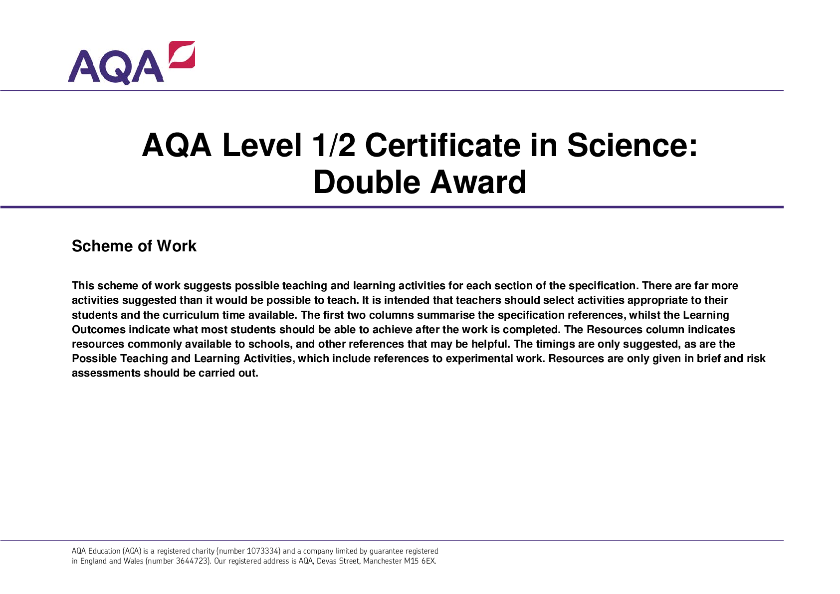 SCIENCE 101 > STUDY GUIDE > AQA Level 1/2 Certificate in Science: Double Award Study Guide (All)