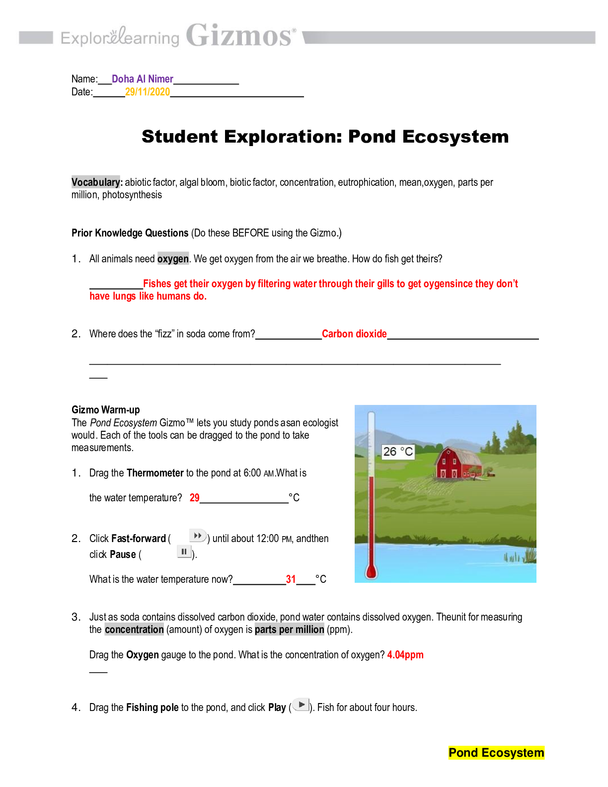SCIENCE 101 > EXAM > Pond ecosystem Gizmos worksheet answer key by Doha Al Nimer 9GB (All)