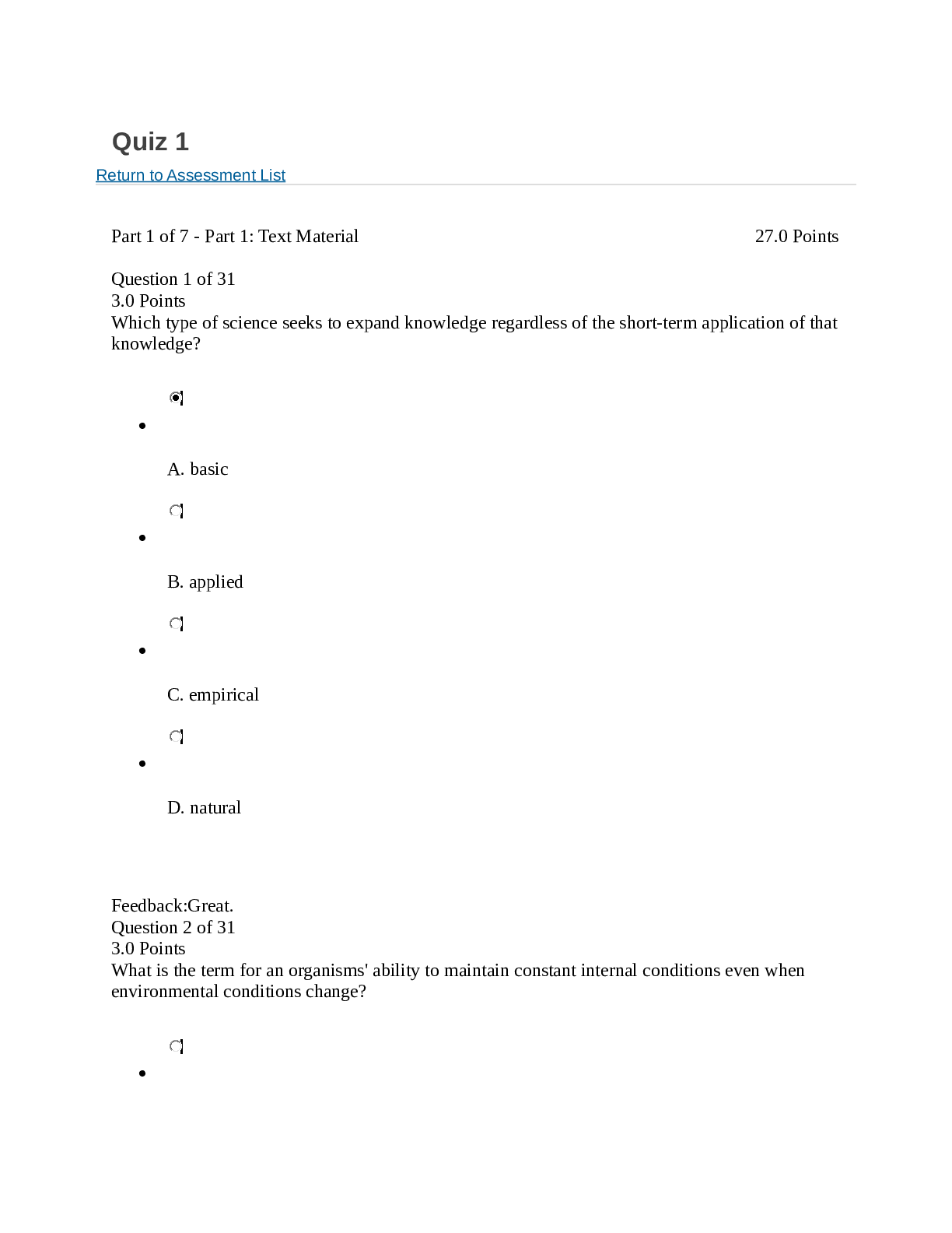 SCIENCE 101 > QUESTIONS & ANSWERS > SCIN 130 / SCIN130, Quiz 1 Questions and Answers(100%) Latest 2021 (All)