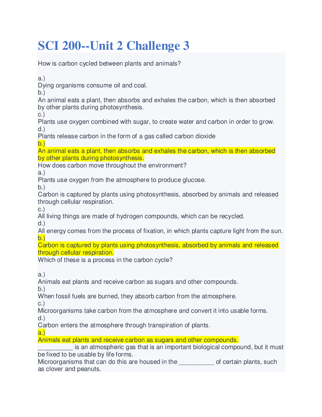 SCIENCE 101 > EXAM > SCI 200--Unit 2 Challenge 3 Questions and Answers Exams 2022/2023 (All)