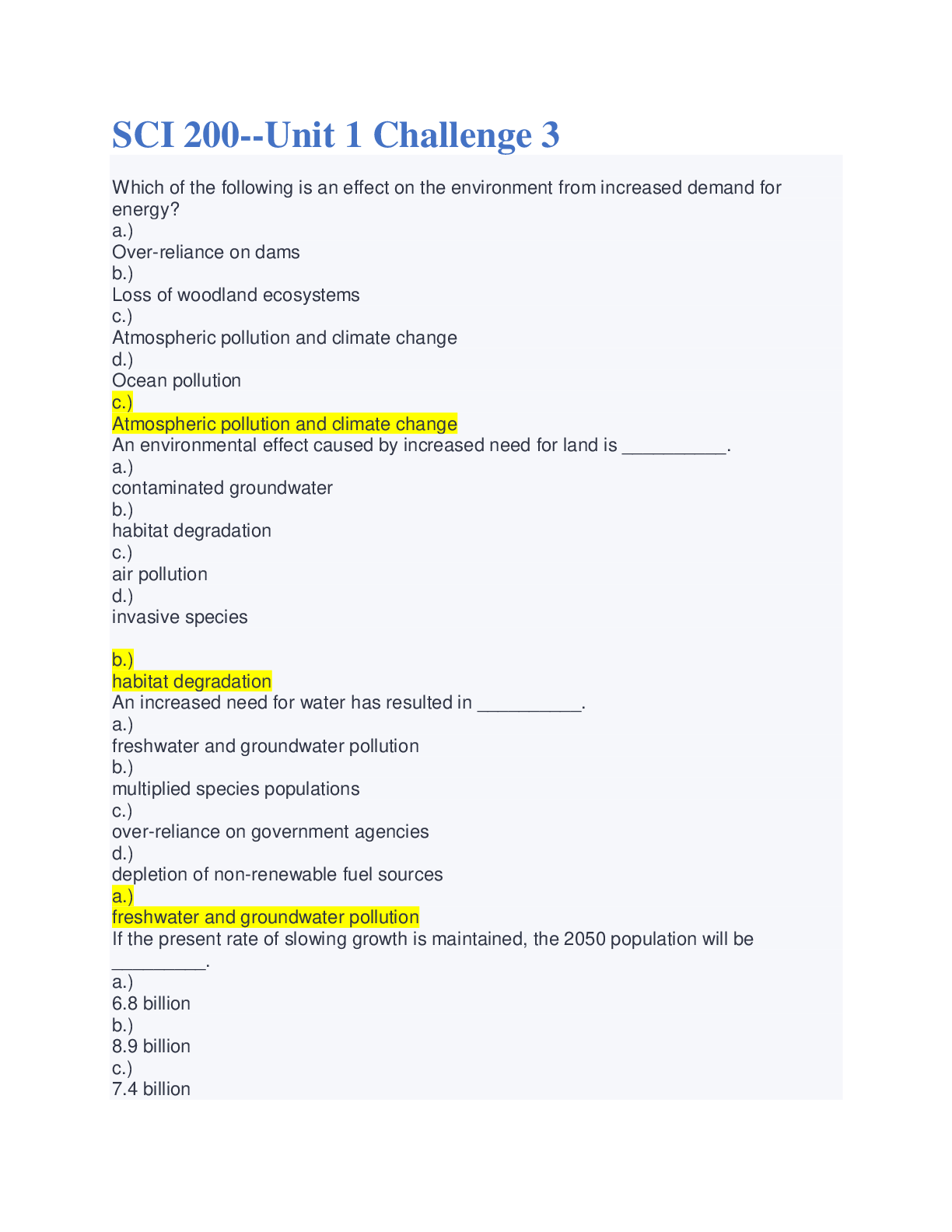 SCIENCE 101 > EXAM > SCI 200--Unit 1 Challenge 3 Questions and Answers Exams 2022/2023 (All)